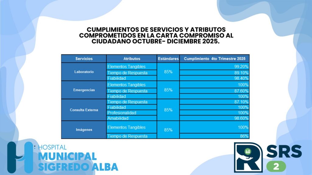 Hospital Municipal Sigifredo Alba presenta resultados de cumplimiento de la Carta Compromiso al Ciudadano correspondiente al cuarto trimestre de 2025